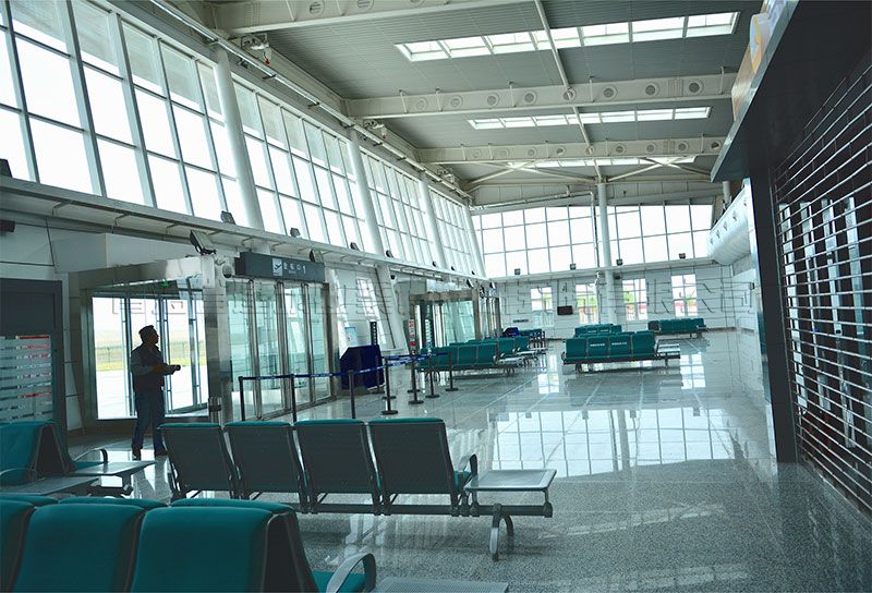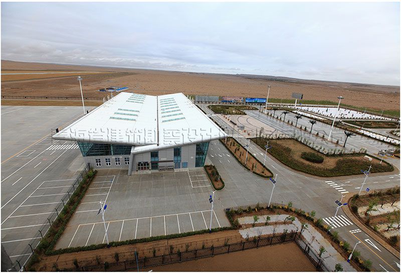 青海省德令哈民用機場工程位于巴音河南側(cè)約3公里處,距德令哈市中心直線距離約29公里,距離城市規(guī)劃邊緣約11.6km。航站區(qū)陸側(cè)圍界用地面積218.40畝。根據(jù)可研評估報告本期機場新建的主要項目為:飛行區(qū)按4C級標準設(shè)計,跑道和垂直聯(lián)絡(luò)道各一條、設(shè)有4個機位的站坪。其中跑道長3000米、寬45米,垂直聯(lián)絡(luò)道長211米、寬45米。機場新建建筑有航站樓、航管樓、綜合服務(wù)樓、綜合辦公樓及消防救援中心、鍋爐房、中心變電站和車庫等配套建筑。航站樓總建筑面積4436.55平方米,,層數(shù)為地上1層,建筑檐口高度12.65米。航站樓內(nèi)設(shè)有辦票大廳、出發(fā)送客大廳、2個安檢通道、候機大廳、行李分揀廳、行李提取廳、到達迎客大廳、貴賓大廳、貴賓廳和貴賓安檢通道等功能用房。